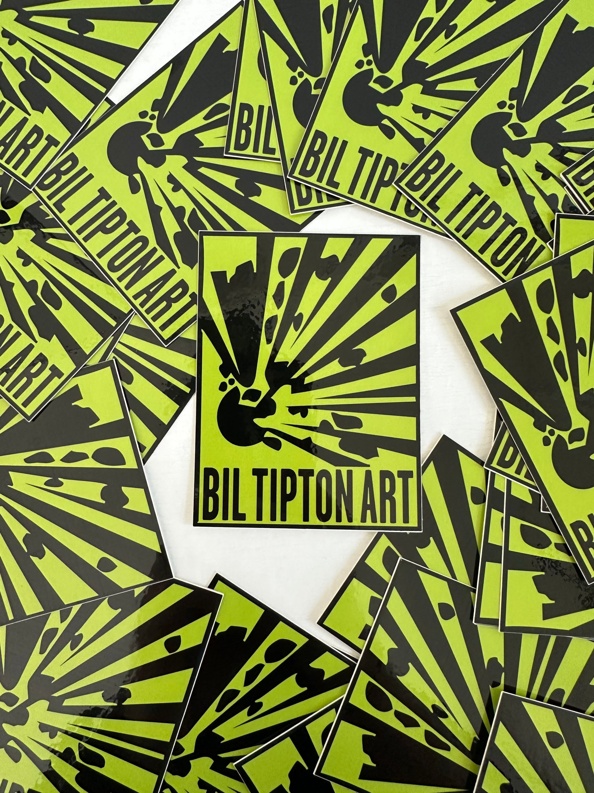 Inspired by classic explosive hazard labels, this 3" x 4" vinyl sticker reimagines danger as expression. A paint can mid-blast, surrounded by bold black spray trails, stamped with BIL TIPTON ART. It’s a visual warning: creative energy is volatile.